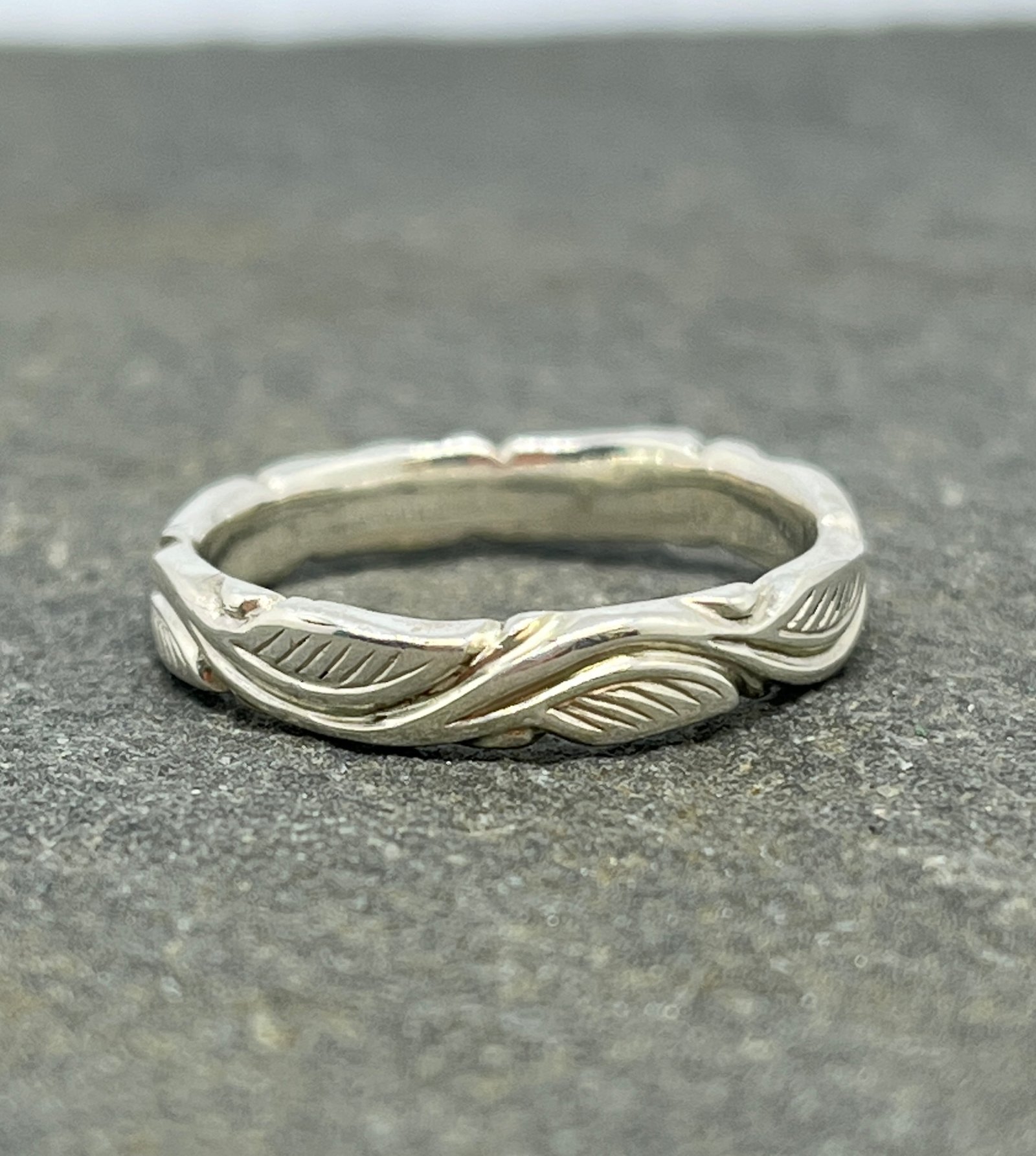 Silver Leaf Engraved Ring